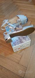 Sandali in similpelle, brillanti color argento, marca Tattoo, tacco circa 2 cm, misura 38, nuovi mai indossati, ancora nella confezione originale