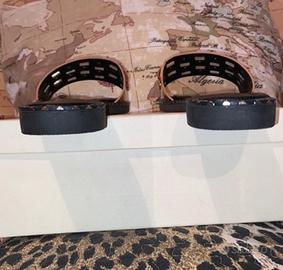 Sandali donna basse con soletta in pelle nera; numero 40; nuove(mai indossate) custodite in scatola originale;
