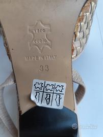 Sandali donna in pelle beige/dorato, tacco comodo cm 6,5, usati 3 volte perché piccoli, n. 33