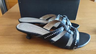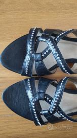 Sandali donna in pelle nera lucida con strass taglia 40.