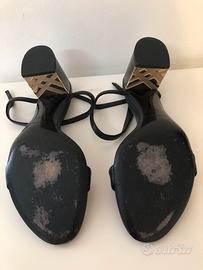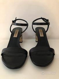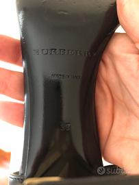 Bellissimi ed eleganti, usati per un paio di eventi. Tacco comodo alto 7,5 cm con interno dorato con l’iconico pattern di Burberry. Misura 39, colore nero.