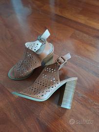 Vendo sandali donna traforati, color cuoio n°36, con tacco largo cm10, in condizioni ottime.