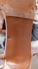 Sandali donna con cinturino e tacco basso, eleganti, con inserti fiori, in vero cuoio, misura 38, in ottime condizioni