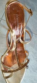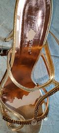 Vendo sandali MAI INDOSSATI. Tacco 10 cm, colore oro con Swarovski.