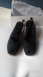 Sandali da donna con zeppa in corda, nuove, numero 40, colore nero, altezza zeppa cm 9, ritiro milano zona san siro