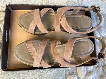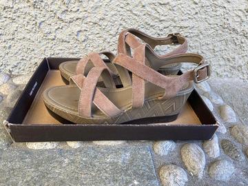 Sandalo Frau beige. Scamosciato. Zeppa con motivo. Ottime condizioni.