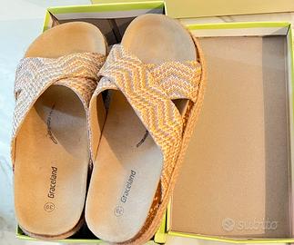 Sandali donna Desigual donna, come nuovi, motivo floreale taglia 39: 30 euro. Sandali pantofole nuove, taglia 39: .10 euro. Sandali color beige, taglia 39: 19 euro. Scarpe sportive donna colore rosso taglia 39: 10 euro. Borsa donna puro cuoio: 30 euro.