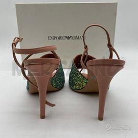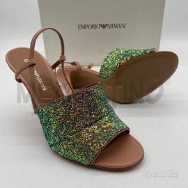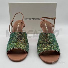 SANDALI DONNA EMPORIO ARMANI NUDE FASCIA GLITTER NUOVE SENZA ETICHETTA CON SCATOLA ORIGINALE TAGLIA 40