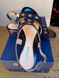 Sandali donna in pelle nera con inserti, made in Italy, comodi, marca Melluso, taglia 36, come nuove, usate pochissimo.