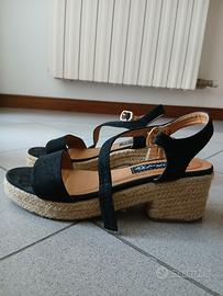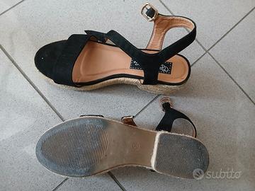 Sandali donna in tessuto nero con zeppa bassa (6/7 cm) n 39 usati un paio di volte vendo per inutilizzo