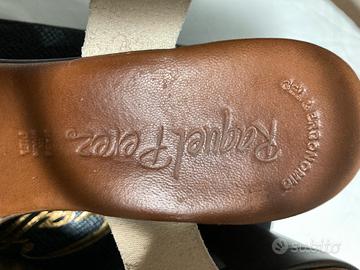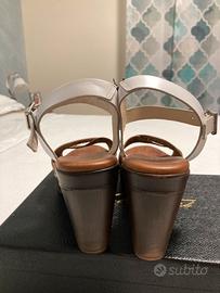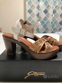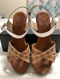 Vendo sandali da donna, usati ma in nuone condizioni, vera pelle, brand Raquel Perez, numero 38,tacco 8cm, colore bianco/marrone.