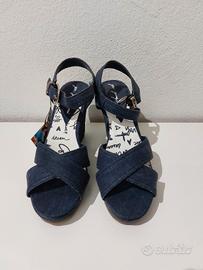 Sandali zeppa donna Coveri nuovi mis 37. Tessuto jeans, nuovi mai usati
