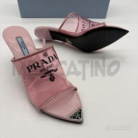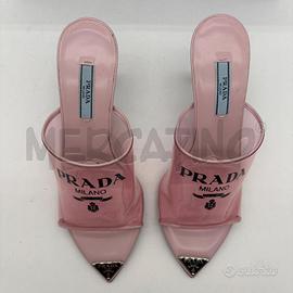 SANDALI DONNA PRADA PLEX LOGO ROSA TACCO PUNTA LOGO OTTIME CONDIZIONI CON SCATOLA ORIGINALE DUSTY BAG E CERTIFICATI TAGLIA 37