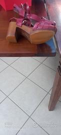sandalo donna a zoccolo nr 36 color vinaccia legno e cuoio ben tenuti come nuovi