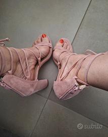 sandali color rosa antico con laccio lungo per la caviglia, tacco 10. Mai usate