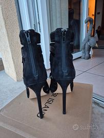 Bellissimi sandali donna con frange in pelle scamosciata nera tacco alto n. 38 marca River Island praticamente nuovi con scatola originale.