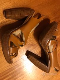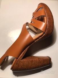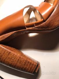 Sandalo bellissimo "ROCCO P" fatte a mano in TORRE SAN PATRIZIO,Made in Italy in vera pelle colore cuoio con tomaia tagliata a filo con suola ,tacco e plato'in vero cuoio,n38 h tacco 12 h plato' 2.