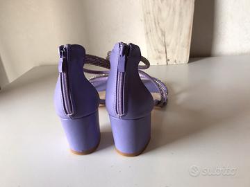 Sandali Chiara Foscari n. 40 colore lilla tacco comodo cm 6,5. Cinghie di strass. Punta quadrata. Chiusura con zip dietro.