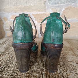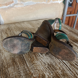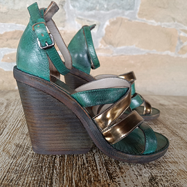Sandali donna STRATEGIA Made in Italy,in vera pelle colore verde e bronzo,con suola e zeppa in vero cuoio .n 37
