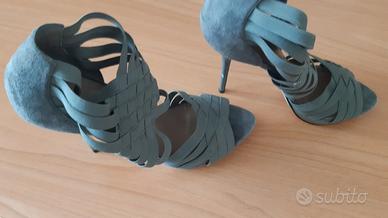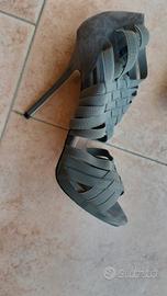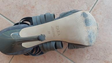 By Zara questi sandali grigio antracite da donna, n.39 con tacco a stiletto 12cm, sono un simbolo di eleganza. Le strisce elastiche donano unicità al sandalo e sicurezza al piede perché lo cingono completamente.