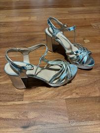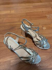 Vendo sandali da donna TATOOO, color argento, eleganti, con cinturino regolabile alla caviglia.