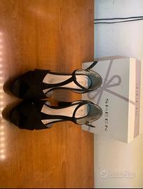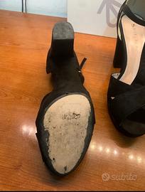 Sandali con tacco alto, materiale eco-pelle, con effetto scamosciato.