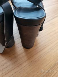 sandali in pelle neri a fascia con chiusura regolabile tacco alto 9 cm piccolo plateu davanti 3 cm misura 37 indossati pochissimo marca Janet