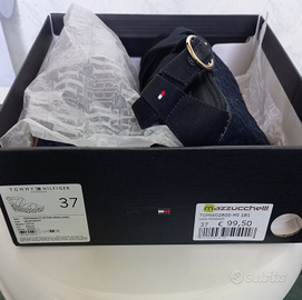 Sandali BLU scuro N. 37 con zeppa alta 10 cm. TOMMY HILFIGER bellissimi, cinturini in tessuto. Sono ancora nella scatola praticamente mai usati