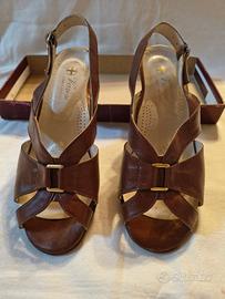 SANDALI DONNA IN PELLE ( USATI POCO ) COLORE MARRONE. TACCO. 5 ,5 CM, SUOLA IN CUOIO N. 36, MARCA. VARESE.