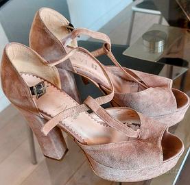 Le scarpe sono state utilizzate pochissime volte, conservate con cura e risultano in ottime condizioni: la pelle scamosciata è pulita, senza macchie né difetti evidenti, e i cinturini non mostrano segni di usura. Solo la suola esterna presenta i normali segni dovuti al breve utilizzo.