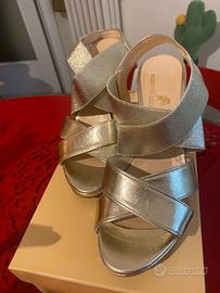 Sandali dorati con tacco Roberto Della Croce. Numero 36. Usati una volta