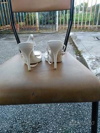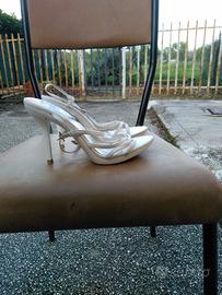 sandali eleganti, color argento, usati in un'unica occasione, tacco 8 cm.Numero 37