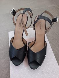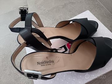 Vendo sandali eleganti Nero Giardini, mai utilizzati. 39, tacco 12 con plateau 1,5 cm. Pelle nera. Ideali per occasioni speciali e cerimonie.