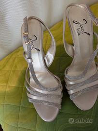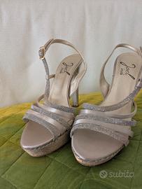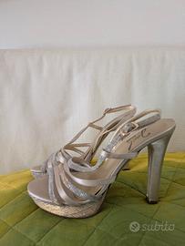 sandali n 38 colore argento / platino , usati solo per accompagnare sposo in chiesa ( metri 200) e per solo un paio di ore. pagati 84 euro vendesi