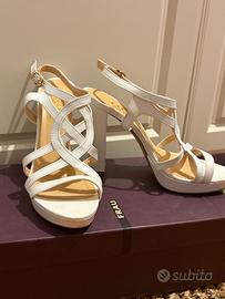 Calzature sandali, brand Chloè, misura 39,pelle, bianche, tacco cm 12 + plateau,condizioni ottime - zona ritiro Roma - oppure spedizione, prezzo € 35