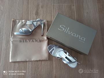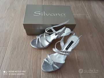 vendo per inutilizzo, sandali nuovi mai usati con plateau di colore argento con punti luce.