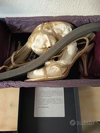 Vendo splendidi sandali eleganti marca Lopez, modello F662, in raffinata tonalità glitter platino (oro chiaro), perfetti per cerimonie, eventi e serate speciali. Il design presenta cinturini sottili incrociati che avvolgono il piede con eleganza, abbinati a un tacco medio che valorizza la figura mantenendo una linea sofisticata. Realizzati in materiale glitterato su base tessile, donano un effetto luminoso e brillante ideale per occasioni importanti. Come molti sandali di questa categoria, sono progettati con plantare confortevole e chiusura regolabile alla caviglia per una calzata stabile. Caratteristiche principali: Marca: Lopez Modello: F662 Colore: glitter platino (oro chiaro) Taglia: 39 Materiale: glitter su base tessile Chiusura: cinturino alla caviglia Tacco: medio e sottile Stile: elegante / cerimonia / sera pagati 155€ usati solo una volta cedo a malincuore a 50€