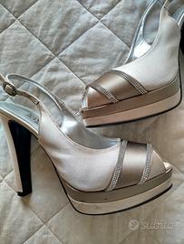 Vendo eleganti sandali in raso, ideali per cerimonie o eventi speciali. Tacco 11 che slancia la figura. Indossati poco, piccoli segni d usura e con scatola originale. Marca italiana: Francesco Couture.