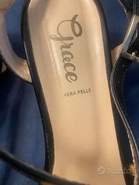 Sandali neri Grace Made in Italy Tacco grosso comodo Alto cm 5