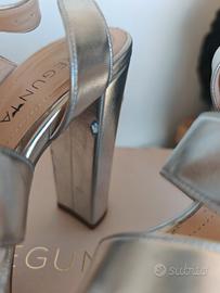 Sandali eleganti da cerimonia con tacco alto, marchio Pregunta, numero 35. Indossati una volta riportano qualche segno di usura, come mostrato nelle foto. Vera pelle
