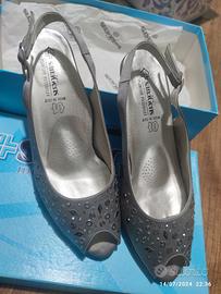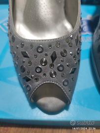 vendo sandali eleganti SanaGens in raso grigio e strass argento n. 37.