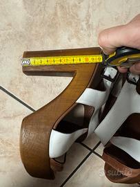 Sandali eleganti con design a fascia incrociate, tomaia in pelle bianca e marrone, cinturino regolabile alla caviglia con fibbia tacco comodo e plateau