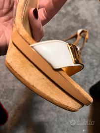 Vendo splendidi sandali Elisabetta Franchi originali, indossati pochissime volte e in condizioni quasi pari al nuovo. Modello elegante con placca dorata frontale con logo Elisabetta Franchi, perfetti per cerimonie, eventi o serate eleganti. Caratteristiche: •Brand: Elisabetta Franchi •Colore: beige/nude con dettagli oro •Cinturino alla caviglia regolabile •Tacco elegante •Ottima qualità dei materiali •Condizioni: praticamente nuovi Scarpe molto raffinate e femminili, acquistate a prezzo molto più alto. Prezzo 180 € trattabili Spedizione / consegna Disponibile spedizione oppure consegna a mano. Per qualsiasi informazione o altre foto scrivetemi senza problemi.