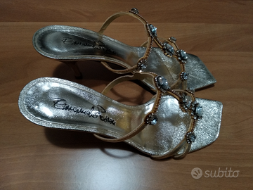 Vendo sandali Emanuela Passeri modello 8003 laminato platino fondo cuoio con decoro in cristalli originali Swarovski