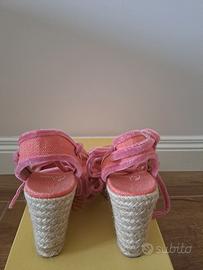 vendo come nuove sandali espadrillas della nota marca Castañer n.36 in tessuto colore corallo e zeppa in corda. Altezza cm 8. Provviste della loro confezione originale.
