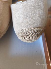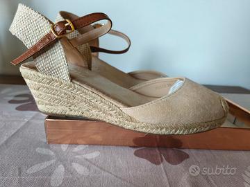 Zeppa in corda altezza tacco cm 6 comodo In eco camoscio beige chiaro,soletta interna morbida Cinturino ecopelle Con dustbag singola e scatola Misura 39 , calzata regolare