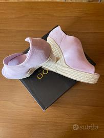 Sandali espadrilles lilla con zeppa in corda , nuovi, numero 38, altezza tacco 12 cm. , plateau 3 cm. . Tomaia in tessuto scamosciato e suola in gomma , vendesi.