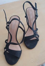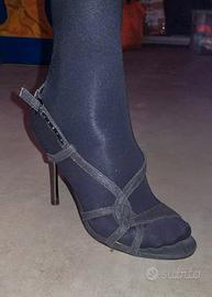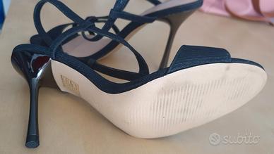Sandali eleganti con cinturino alla caviglia. - Design con fascette incrociate sulla punta. - Tacco alto sottile. - Chiusura con fibbia regolabile. mai usati