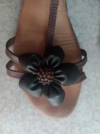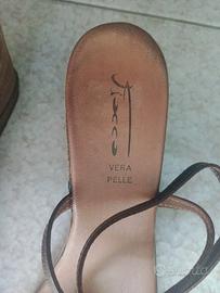 Sandali estivi in vera pelle, con cinturino sottile e tacco basso, colore marrone, misura 41.