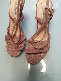 Sandali estivi da donna n. 35 colore rosa fuxia, tacco 10 usati una sola volta x una cerimonia